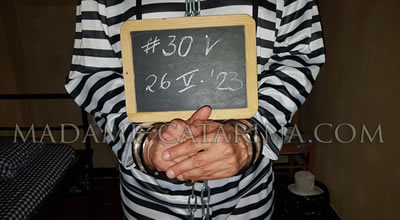Dear Sublime Madame Catarina, i thank You so much for this magic very intensive session of submission to Your Sublime Beauty and Your Great Power. i savored in continued ecstasy and great gratitude every moment of these unique 24 hours under Your strict and amazing control. When i contacted You for an intense submission session i have never imagined my 24-hours splendid fate under Your full control. i was in full shock and fear when You gave me the mysterious appointment next to a park at Berlin suburbs, without any other indication of what was going to happen. When the black van stopped next to me, the side door opened and You order me to enter, i realized that there was no way back and i was fully surrendered when You quickly put me in hood, blindfolds, earplugs and handcuffed around the waist, for a long silent road trip along the motorway and the country roads. i experienced very strong feelings of fear and agony before and during the kidnapping, not knowing what, where and when will happen to me, driven to the unknown deprived from any sight and hearing. Then i found myself at the woods, alone in front of You, and i gradually felt so free leaving the human's world, transformed into a well restrained bridled black human pony, with the slow process of transformation being so strong, especially when putting the bite on my mouth. i quickly understood that my only concern will be my pony posture and tasks, dictated by the bridle and the long whip. i was shivering in joy when pulling endlessly the sulky and receiving Your sudden painful whipping to go faster, honored to be of use to Your sublime Beauty, in Your beautiful knee-high riding boots and Your powerful short black leather gloves. When the ride stopped, i found myself in complete pain and despair, securely tied spread eagle - face on the ground and receiving Your merciless strong whipping on my back, with Your boots in front my face, on my head, on my body; a joy that i was wishing to never end. When You finished Your picnic, i was driven back, to soon realize that my destiny was at Your real prison cell, feeling so beautifully controlled, in great difficulty to move with the heavy shackles at hands and feet. The prison time was passing slowly making me digest my role of submission at the Ladies Society; available for Your sadistic and lustful pleasures. i had such strong masochistic pleasures during the strong canning and whippings before, during and after sleeping, just for Your sadistic pleasure, wishing not to stop. Especially, when woken up in the middle of night, having lost track of time and attached at the pillory for a so beautiful heavy single-tail whipping. The morning whipping was also so painful and beautiful and i strongly wished to be whipped like this every morning. Later, i was released from the prison to find my natural place, well secured under Your office table, with Your divine feet (in heels or not) endlessly on my naked body and on my face, my dream office job. Being happy to be useful as Your doormat when You were working on Your laptop affairs, the ideal slave's position. my mind and my body were totally captivated by Your Sublime Beauty, shining in every moment, with Your gaze imposing me humility, Your whips on Your gloved hands dictating me submission, Your divine booted legs showing me the way to obedience and Your firm orders leading me to complete surrendering. kneeling humbly in front of Your Great Beauty in immense gratitude, i am looking forward to serve You again soon. slave #30 V